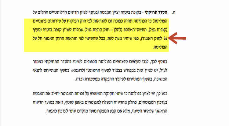 הפוליסה שהיא חוזה,בעצם כפופה לשינויים של הרגולטור/המפקח על הביטוח/משרד האוצר/ ממשלת ישראל , ככל שיראו וימצאו לנכון לשנותה
